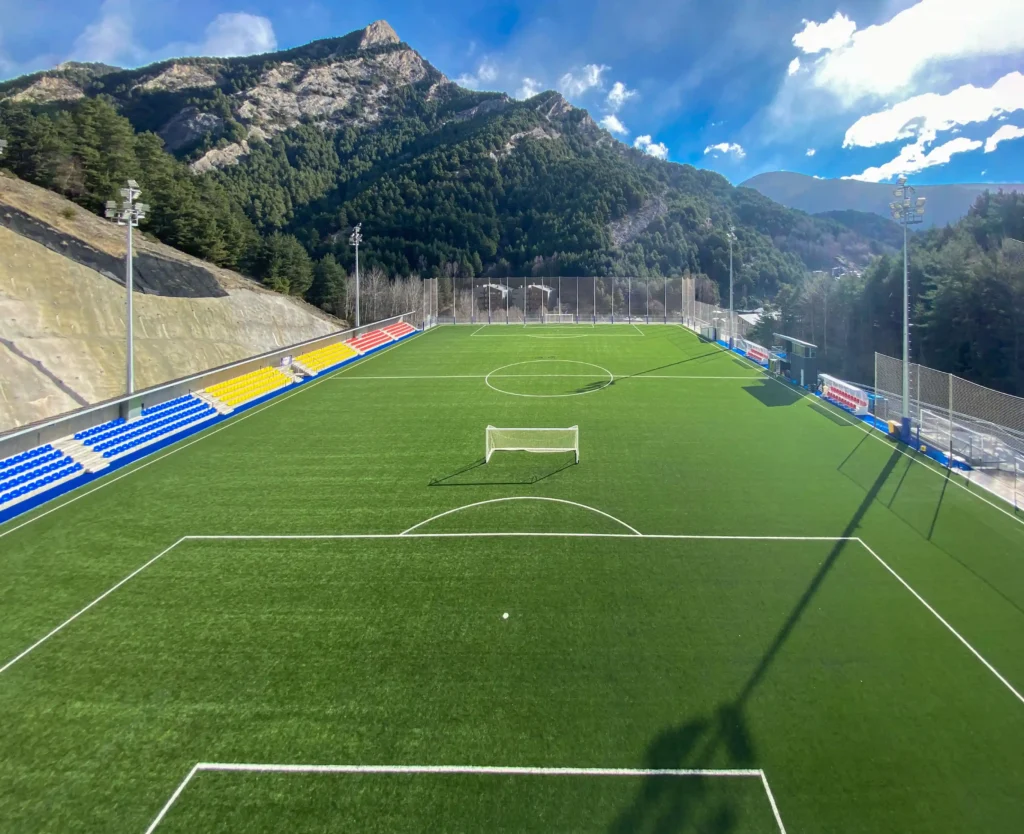 Engitec ha desenvolupat una infraestructura esportiva innovadora a Encamp, integrant un camp de futbol en un entorn natural de muntanya. El projecte destaca per la seva sostenibilitat, amb gespa d’última generació i un sistema d’il·luminació que evita la contaminació lumínica. L’obra, impulsada pel Comú d’Encamp i el Govern d’Andorra, ha estat executada amb criteris tècnics avançats per minimitzar l’impacte ambiental. Engitec ha liderat la planificació i execució, garantint una perfecta integració paisatgística i funcionalitat esportiva en condicions de baixa lluminositat.