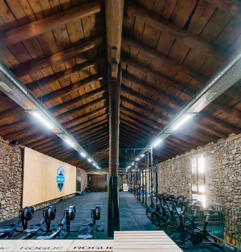 La reforma del Paller de la Borda Mateu ha convertit una construcció típica d’Andorra en un modern centre de CrossFit, mantenint l’essència rústica de pedra i fusta. L’interior diàfan de dues plantes combina estructura de pedra, coberta de fusta i pissarra, i un disseny que respecta les obertures originals, aportant llum natural filtrada. A la planta inferior hi ha la zona de descans i vestidors, mentre la superior acull el box de CrossFit amb tot el material necessari. La intervenció ha millorat l’aïllament tèrmic amb panells impermeabilitzants, afavorint l’estalvi energètic i demostrant que arquitectura tradicional i pràctica esportiva poden conviure amb harmonia.