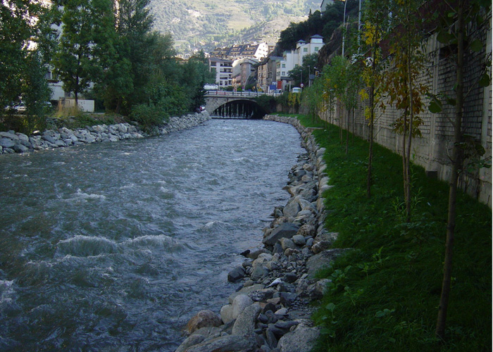 Canalització del marge esquerre del riu a Arinsal